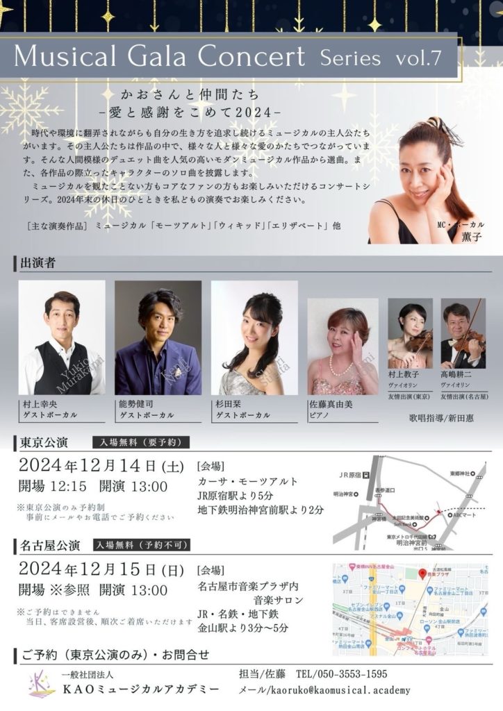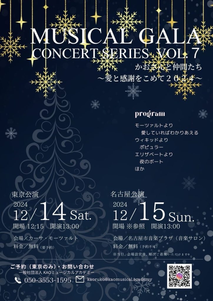 私が稽古ピアノを務めている、こちらのミュージカルコンサートが12月14日(東京公演)と15日(名古屋公演)にございます。