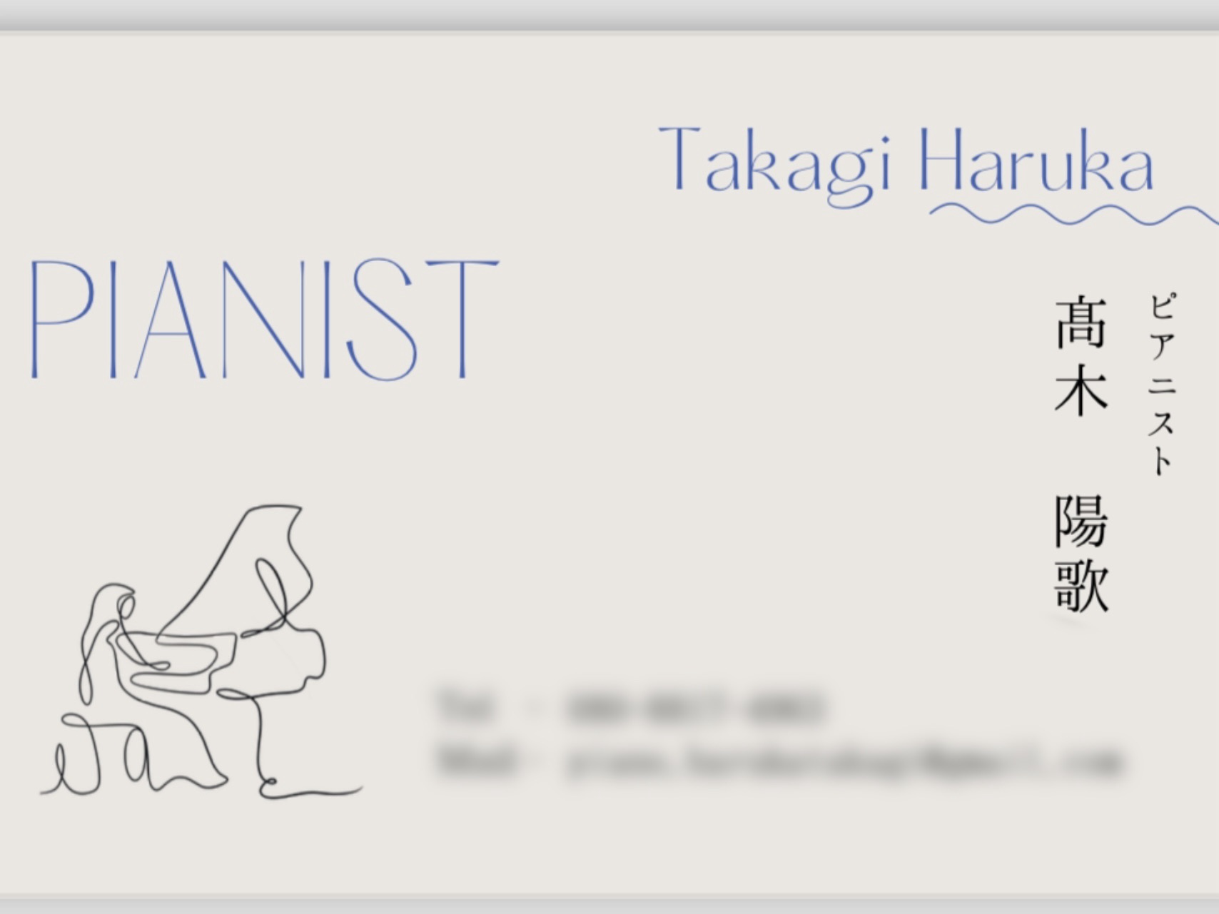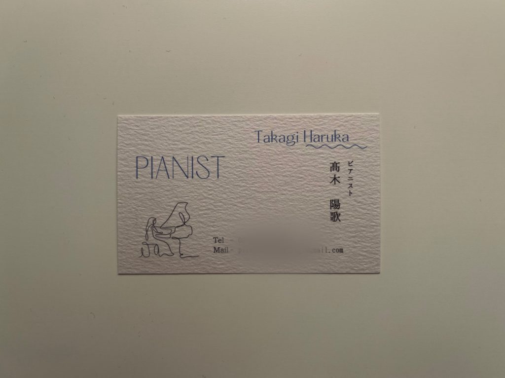 名刺 2024.05.222024.03.29 先日新しく名刺を作成しました🎵 以前から別の名刺は持っていたのですが、HPを作成したり社会人にもなるということで自分で新しく作成しました! 表はこんな感じでピアノのイラストと名前を。 裏はQRコードを埋め込み、かざすとこちらのホームページに飛べるようになっています☺️ 大学も卒業し、4月からはいよいよ社会人として新しく出発します。この名刺を多くの場所で沢山の方々にお渡しできるよう、更に精進していきたいと思います💪