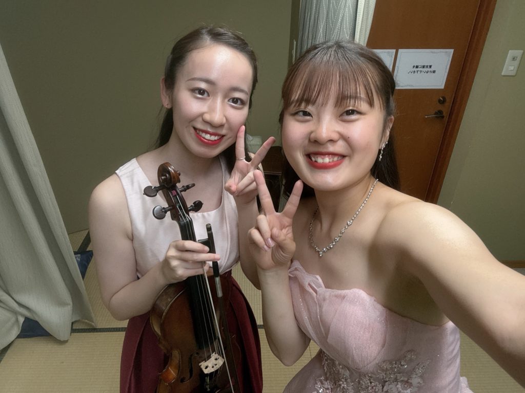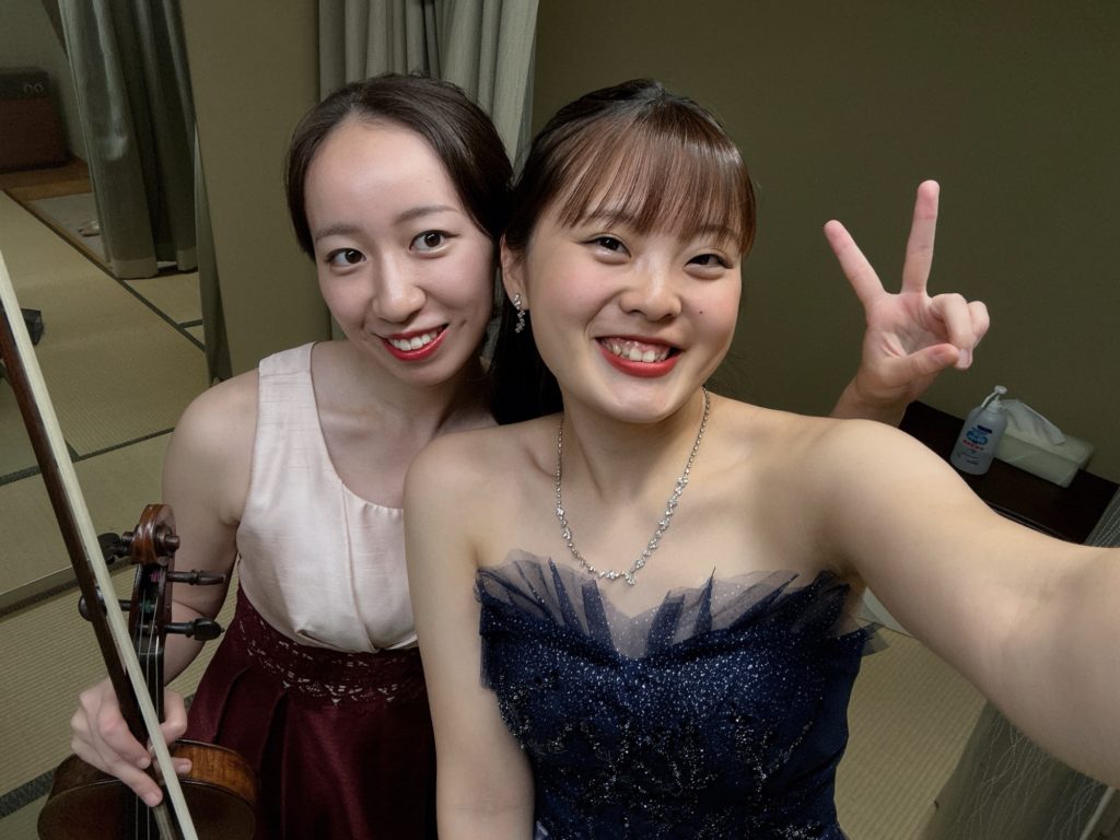 鐘山苑 ほたる祭り終演🌌 2025.06.11 2025.6.7-10 ほたる祭り🌌 ホテル鐘山苑のほたる祭りに出演させていただきました! 1日目はチェロの今屋海音ちゃん、2-4日は丹治成美ちゃんとで、とっても楽しい4日間でした✨ 雨が多い日ばかりでしたが、蛍が見れたりちょっと観光できたりと息抜きもできてとってもラッキーな日でした。 ラウンジにいらしたお客様も温かい方が多く、終演後にお声をかけてくれたり大きな拍手をいただいたりと、とっても嬉しかったです🥂 次回は6.22に改めて成美とお伺いします! 1日目はチェロと! 蛍を意識したドレスカラー 3日目はピンクでした! オフショット??(笑)