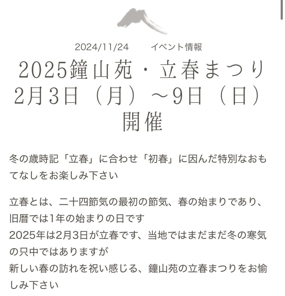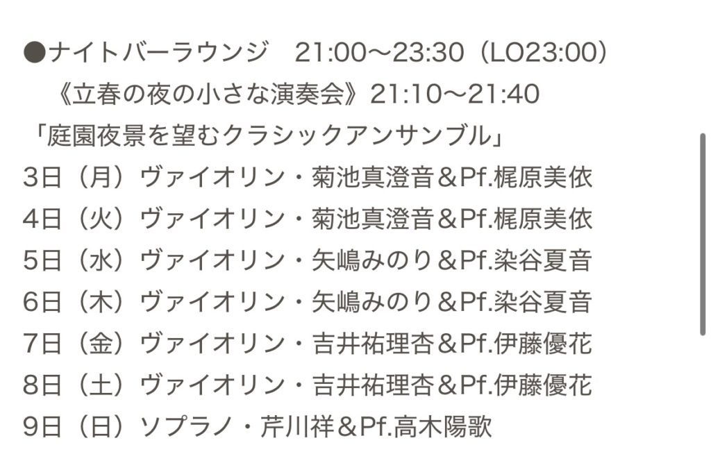 2月9日に山梨県にあるホテル鐘山苑の立春祭りコンサートに出演致します🍸
