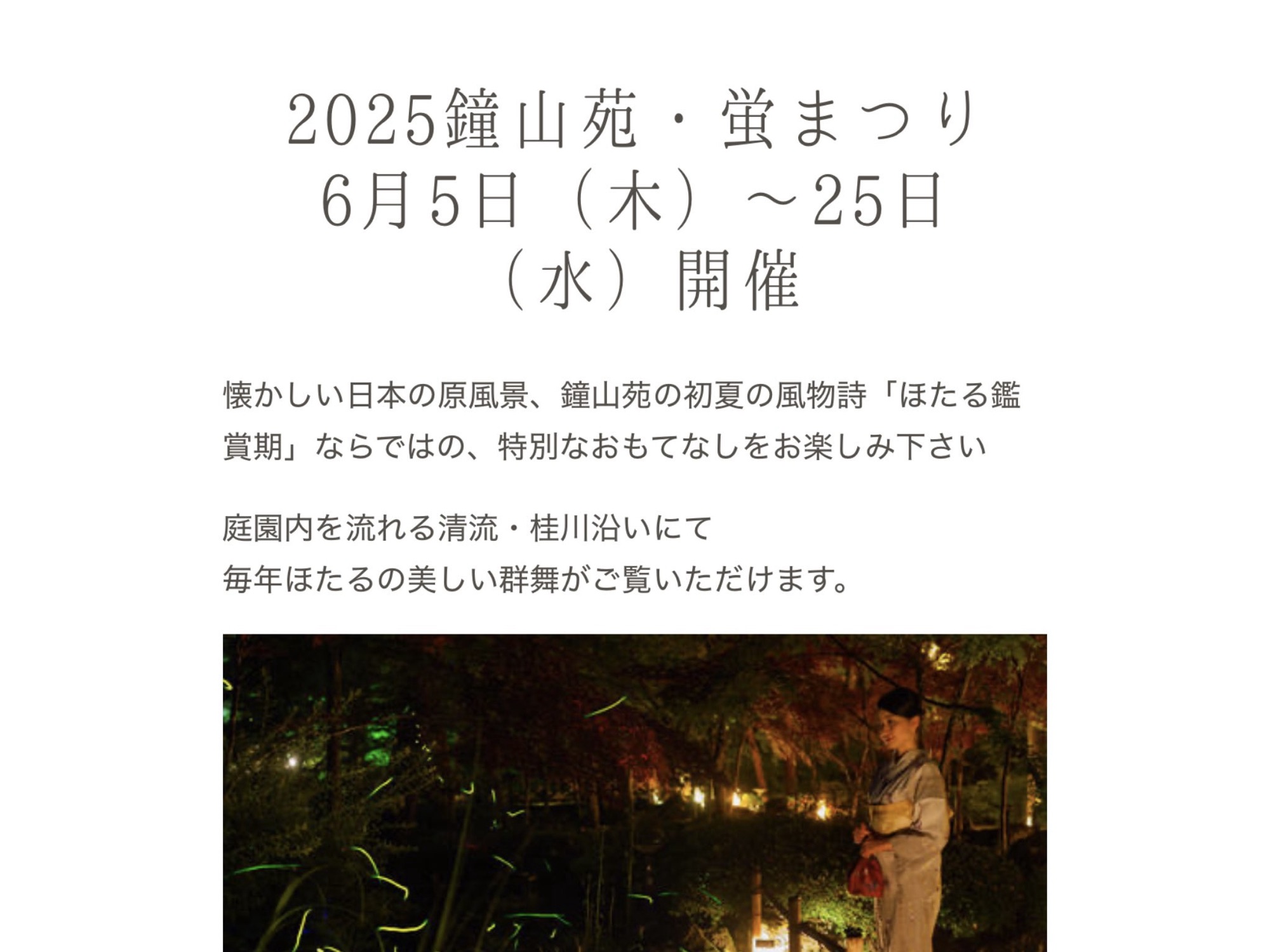 庭園で蛍が見れる時期で、去年お伺いした際もとっても美しかったので、今年もお邪魔できて嬉しいです✨