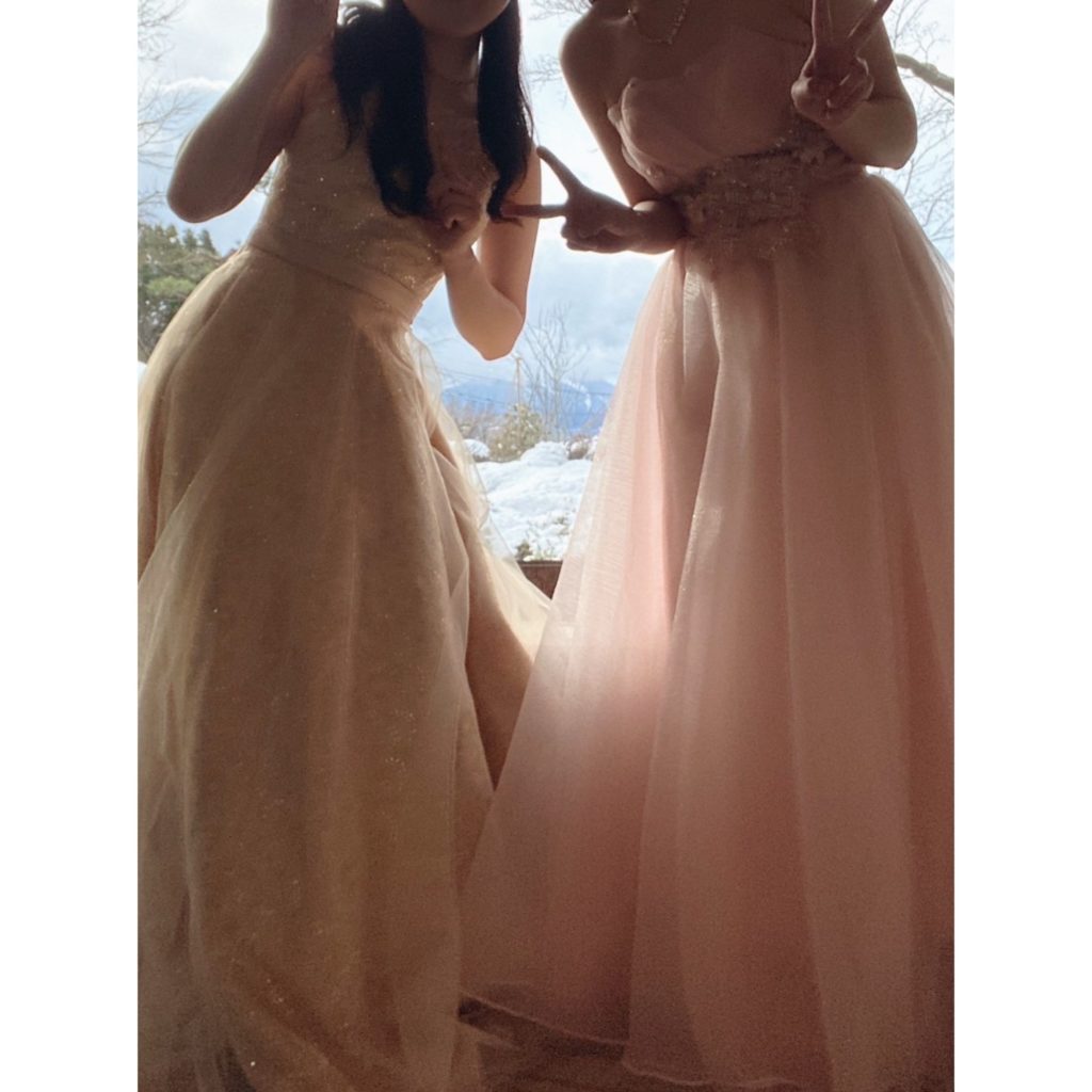 バタバタで会場でドレス写真撮れなかったけど、どうにか撮りたくて撮った写真。鬼逆光でお顔が真っ暗だったので顔カットで👗