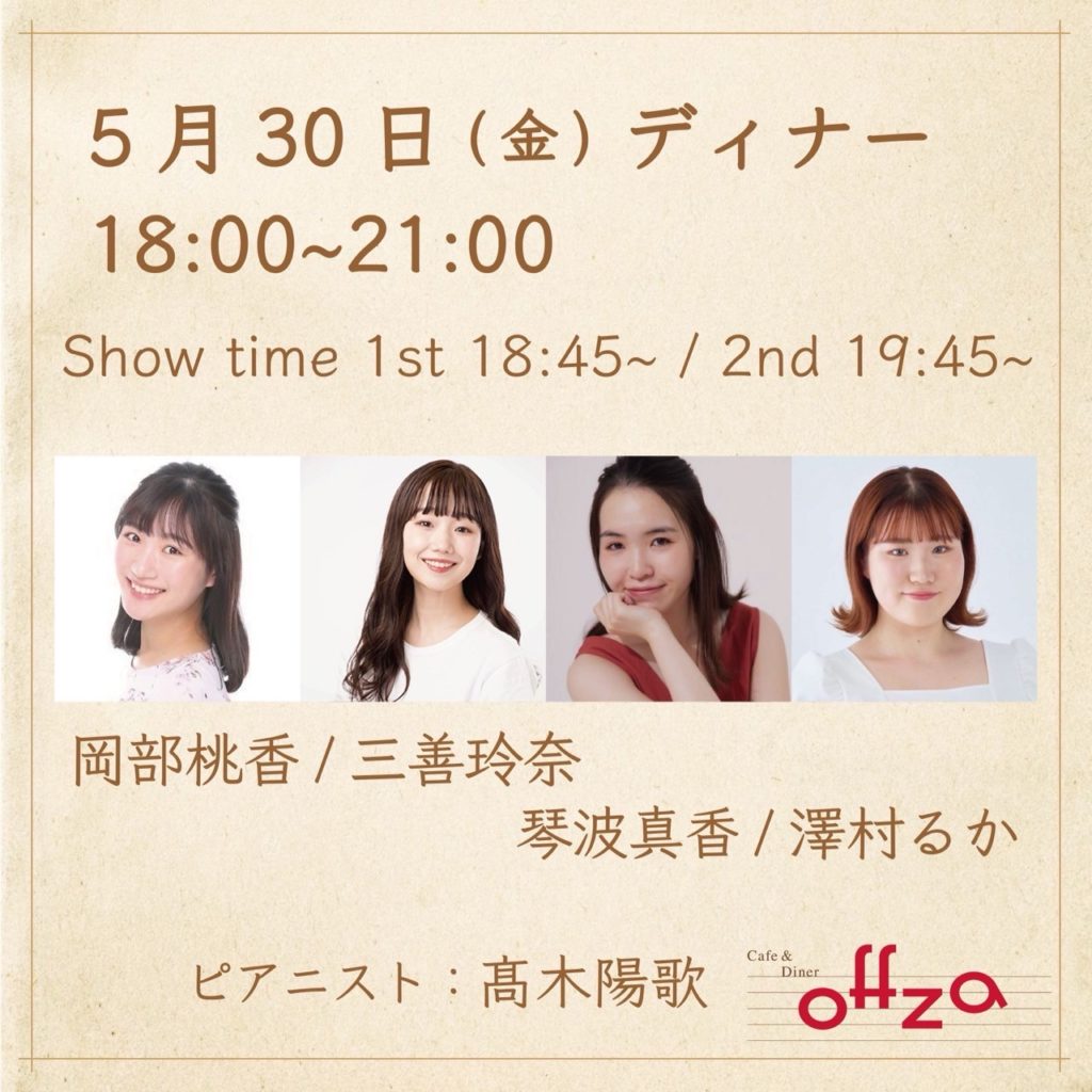5月30日のディナータイムに出演いたします。